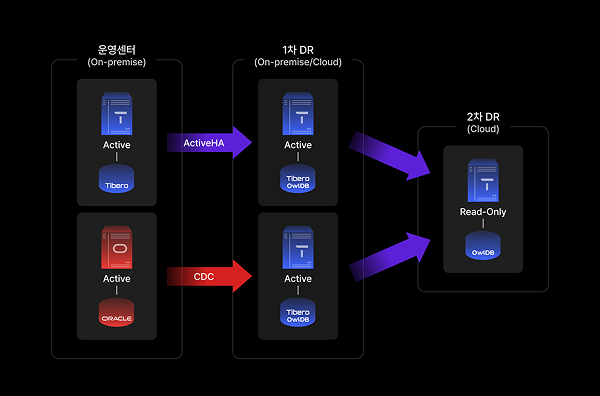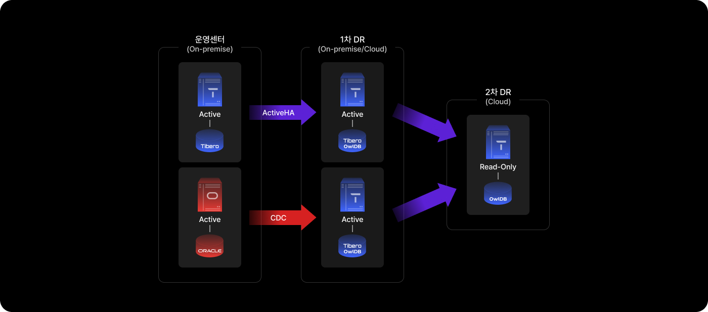 ADR은 주운영센터가 Oracle이어도 DR센터는 Tibero로 운영할 수 있습니다.